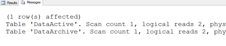 Even though the data returned by the query came from the DataActive table, SQL Server also searched the DataArchive table. To fix this issue, you must add check constraints to the tables which will allow SQL Server to ignore tables that are not needed in a particular query. You should also refresh the view definition. Make the changes and run the query again.